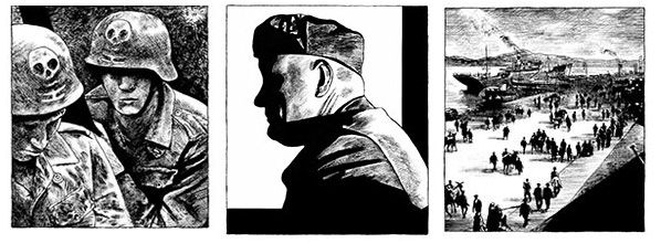 Resulta particularmente curioso el hecho de que Frédéric Pajak haya centrado gran parte de su trabajo en estos tres personajes. En La inmensa soledad (Errata naturae) son Nietzsche y Pavese los protagonistas de su pincel o pluma, tinta china y papel. Obra extraordinaria ésta en la que entrelaza la vida de ambos, centrándose en sus respectivas vivencias en la ciudad de Turín. Con este trabajo Pajak conquistó a unos cuantos, incluyéndome a mí. La particularidad de su quehacer literario, su singularidad, radica en la combinación de texto e imagen. Esto no sería una novedad si no fuera porque aquello que Pajak nos ofrece es un ensayo, una especie de relato filosófico. En otras palabras, el autor francés combina la narrativa con la novela gráfica y el texto ensayístico, permitiendo que muchos lectores reticentes a adentrarse en los vericuetos de la filosofía moral se atrevan a profundizar en serias reflexiones sobre ideología o el pensamiento moderno. He ahí su gracia.